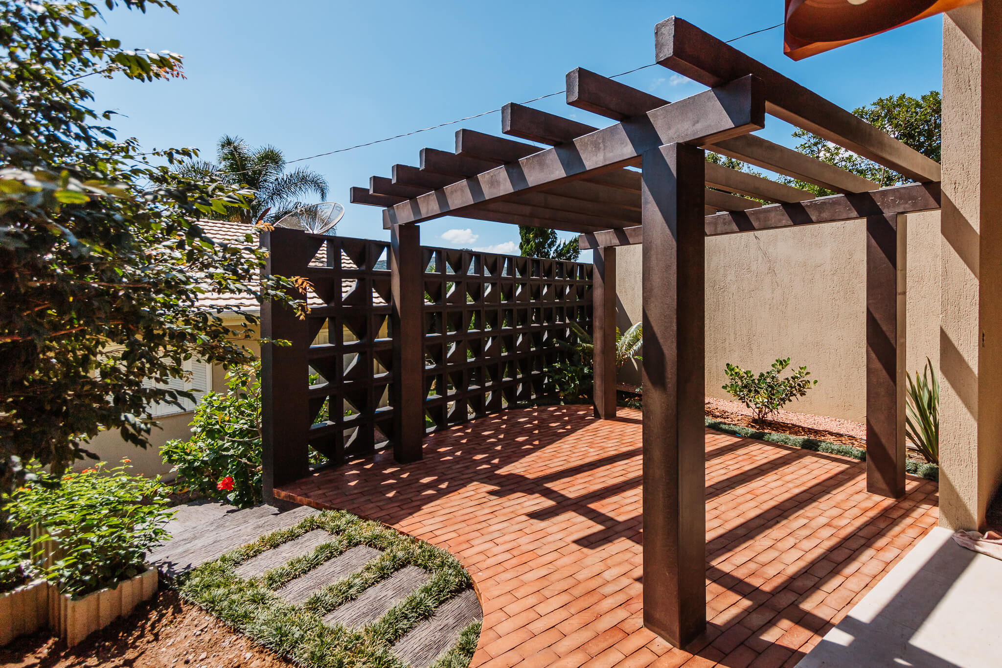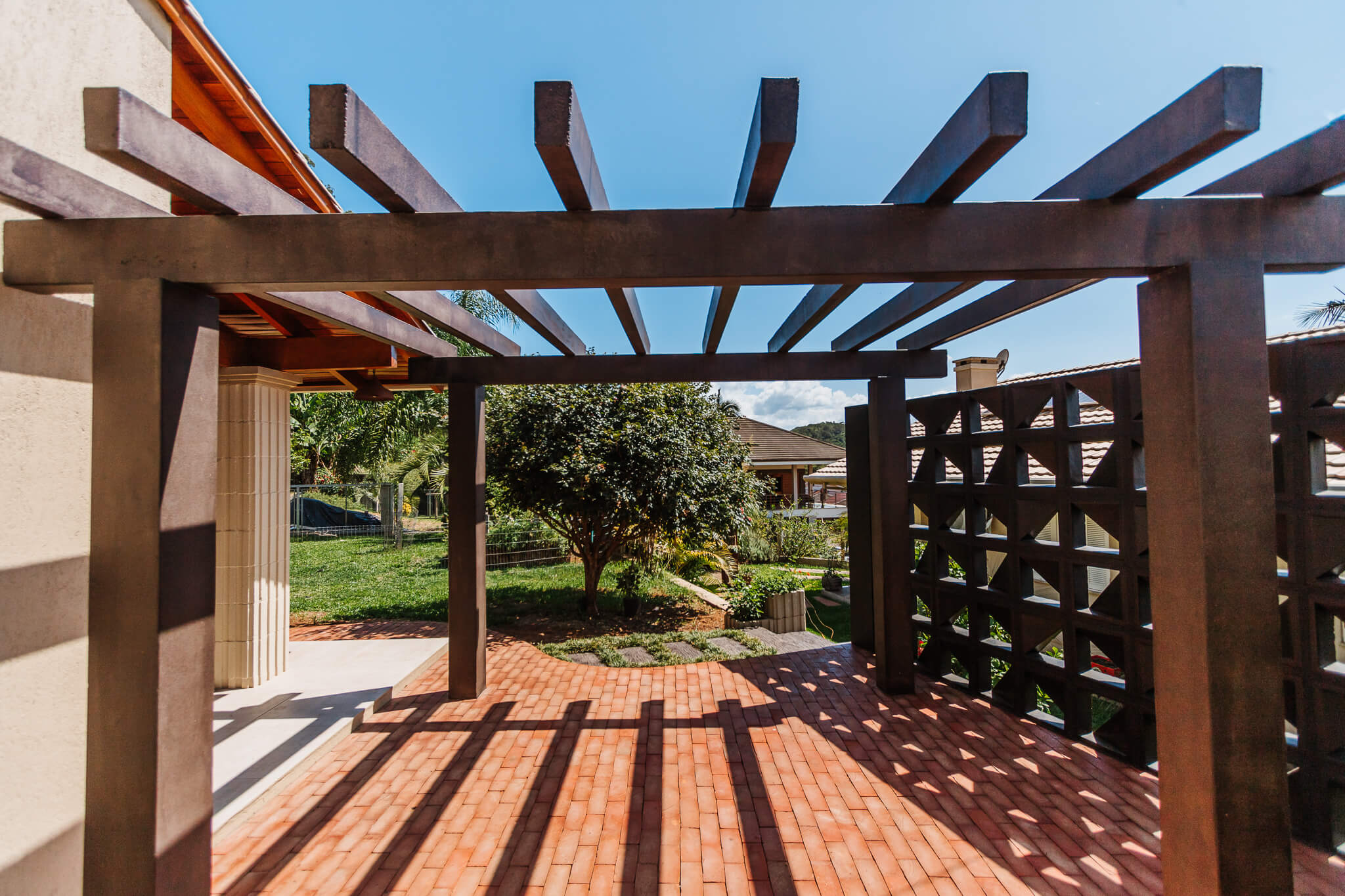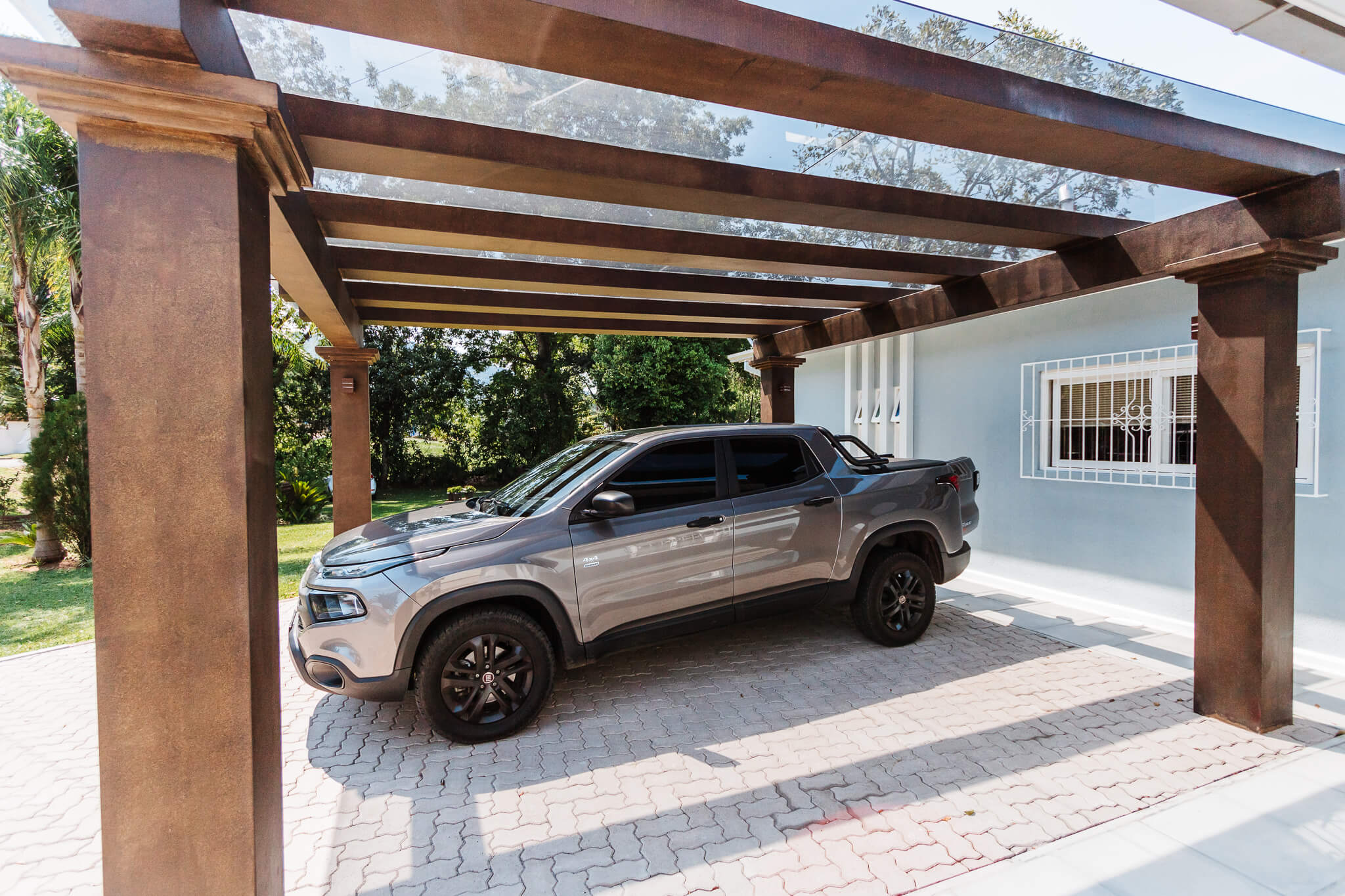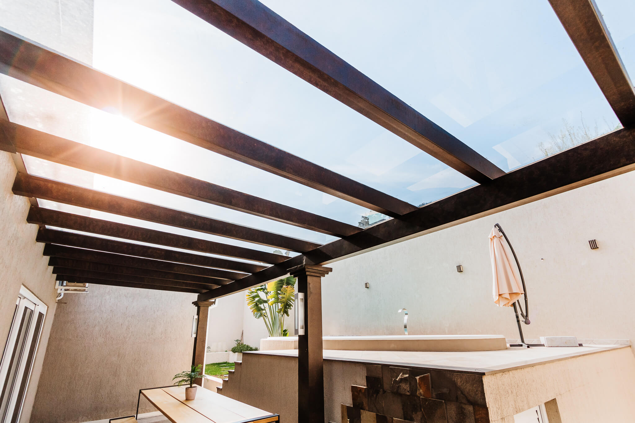 Estrutura utilizada em jardins, vagas de garagens, varanda, churrasqueiras, locais próximos à piscinas ou em espaços de transição, como por exemplo corredores externos.