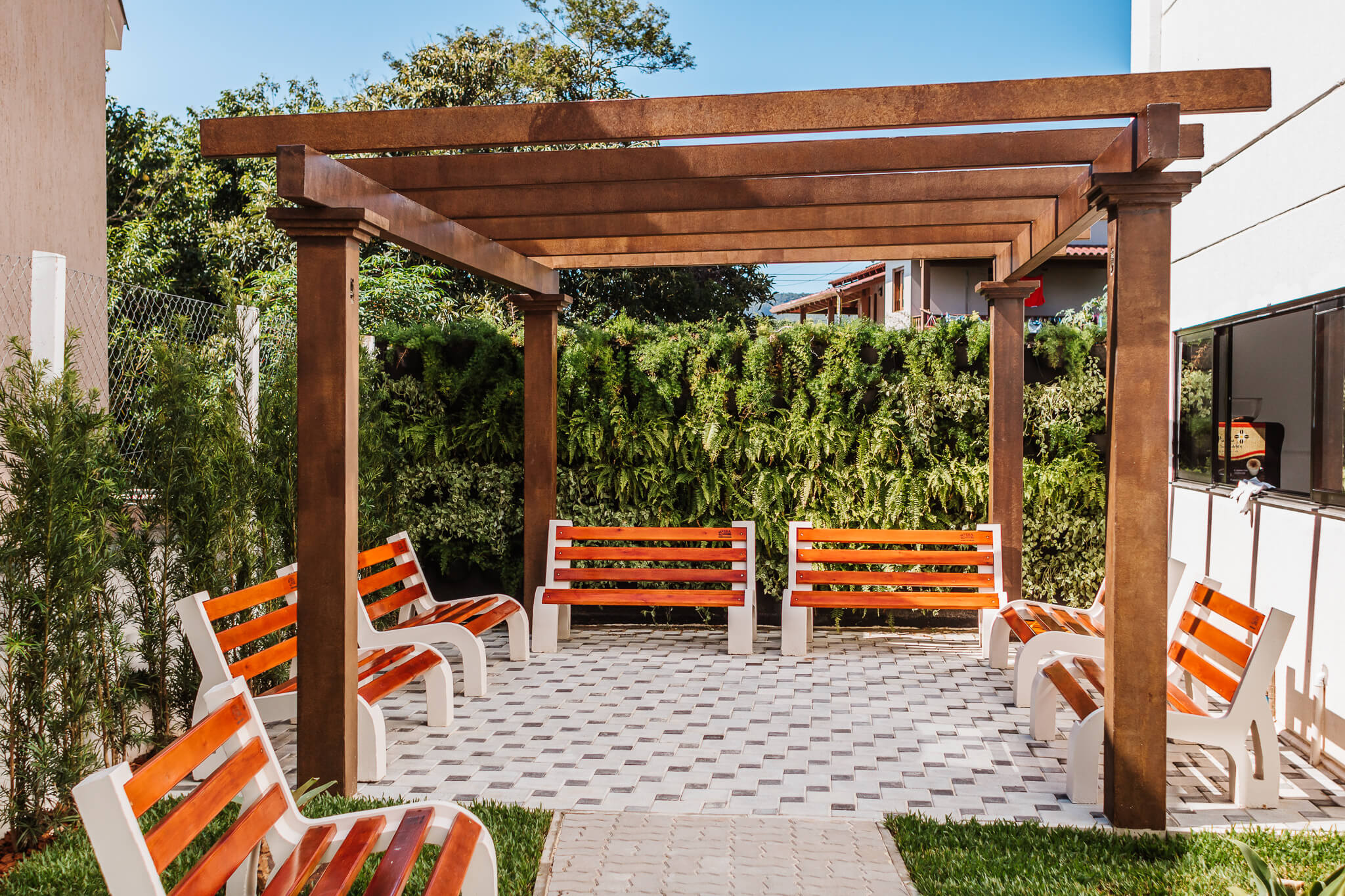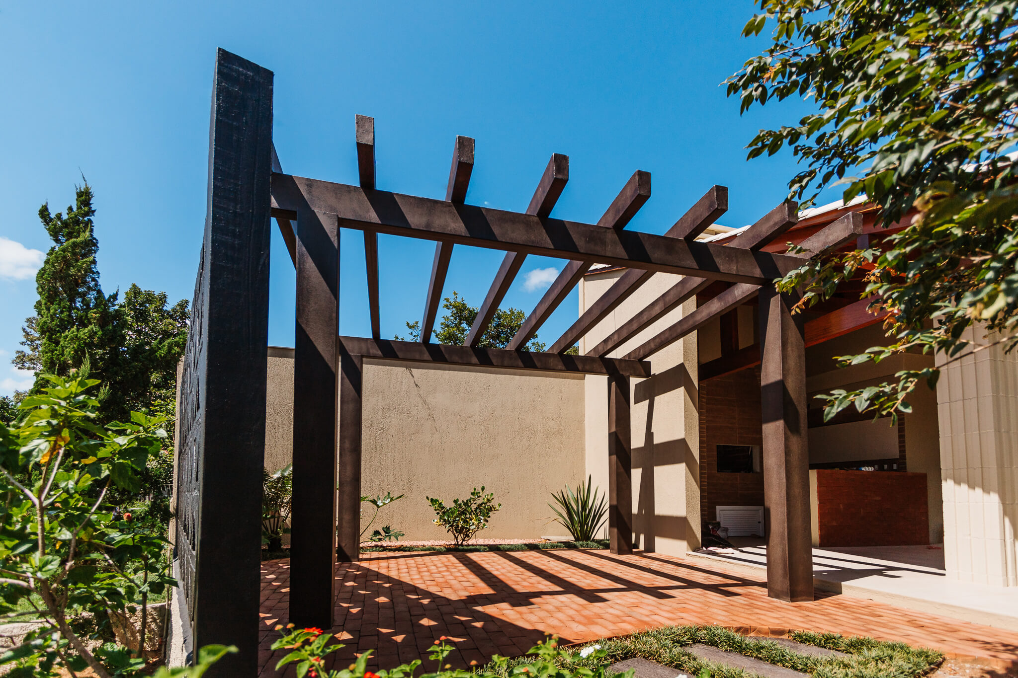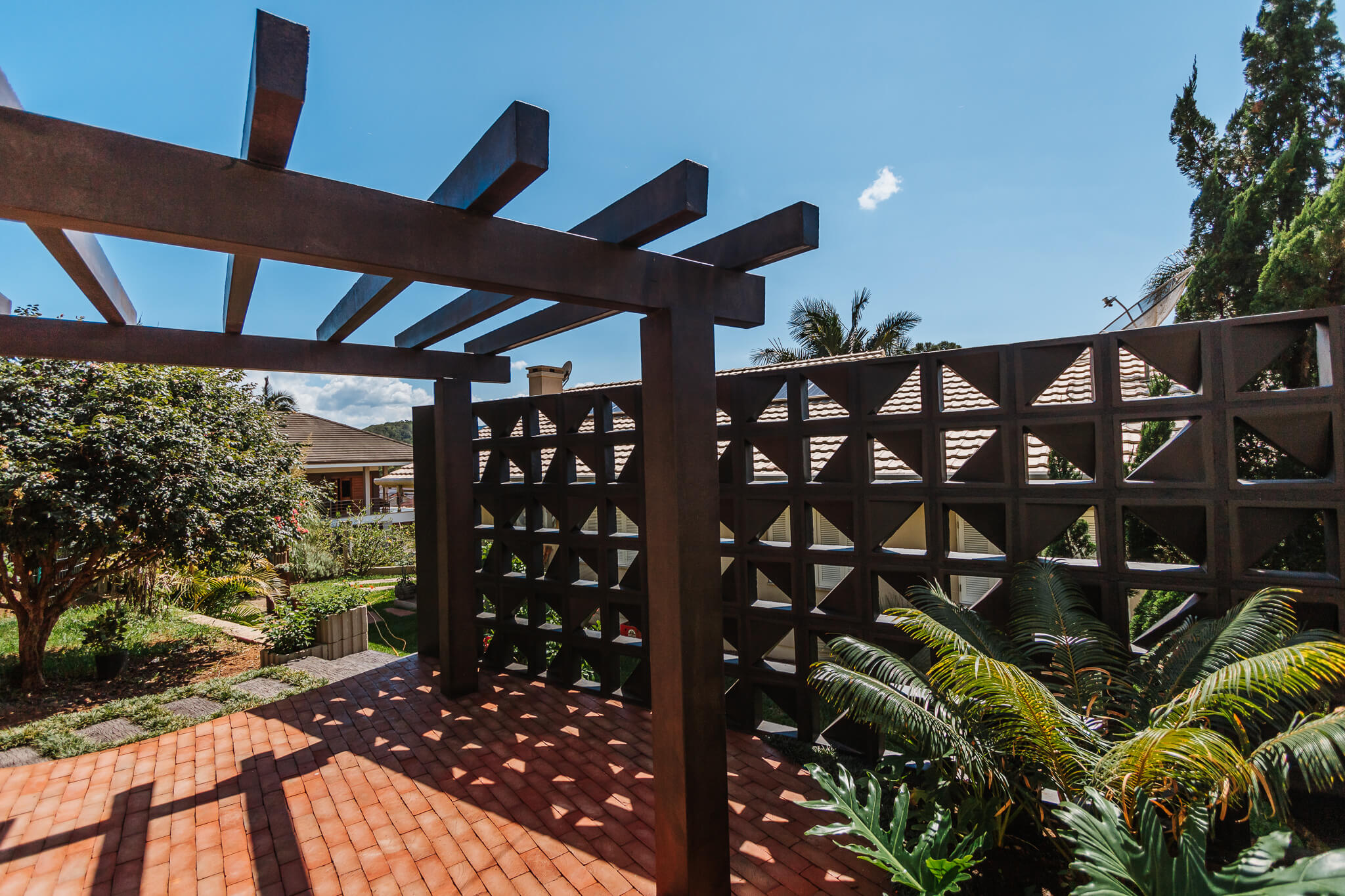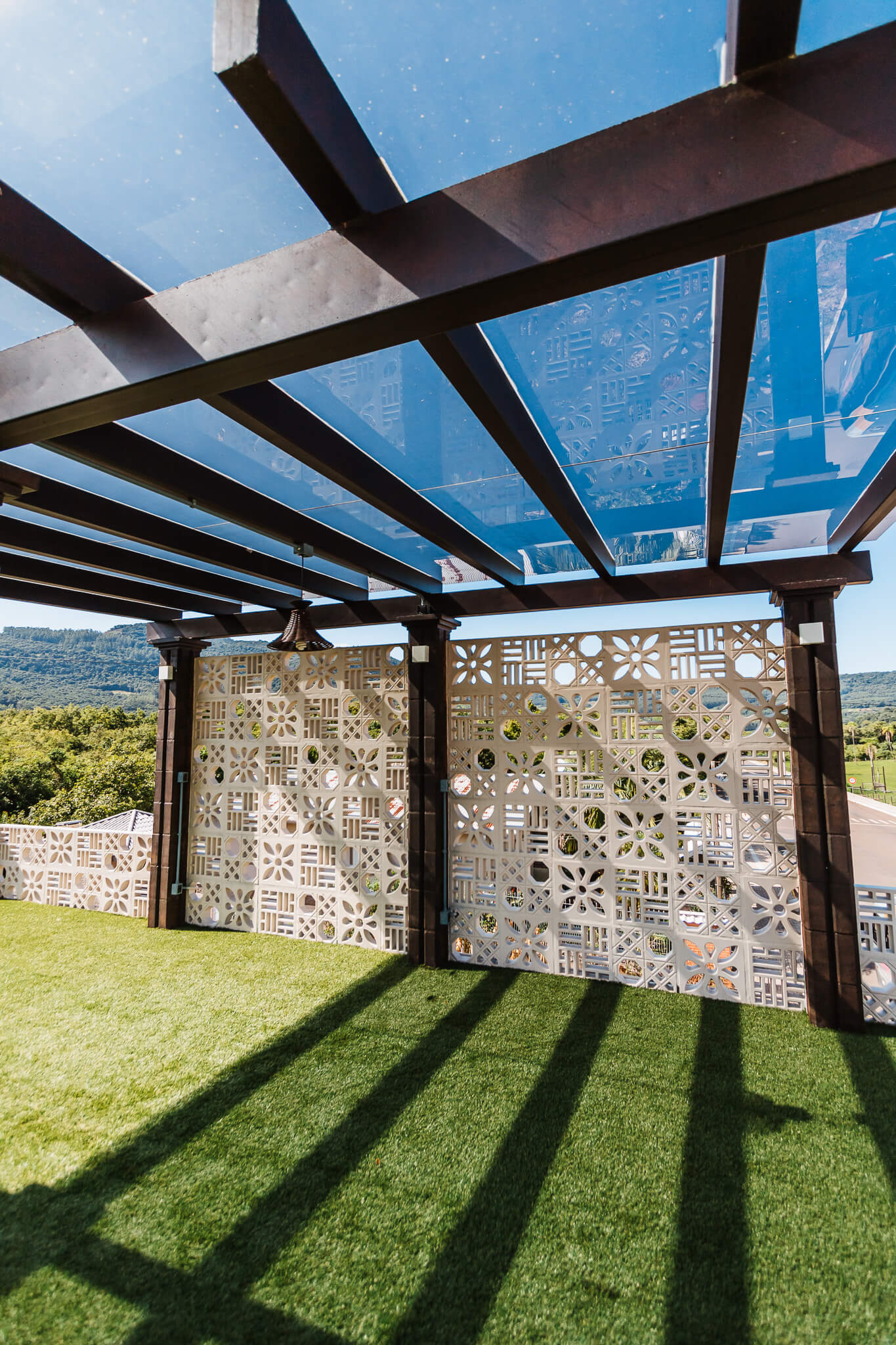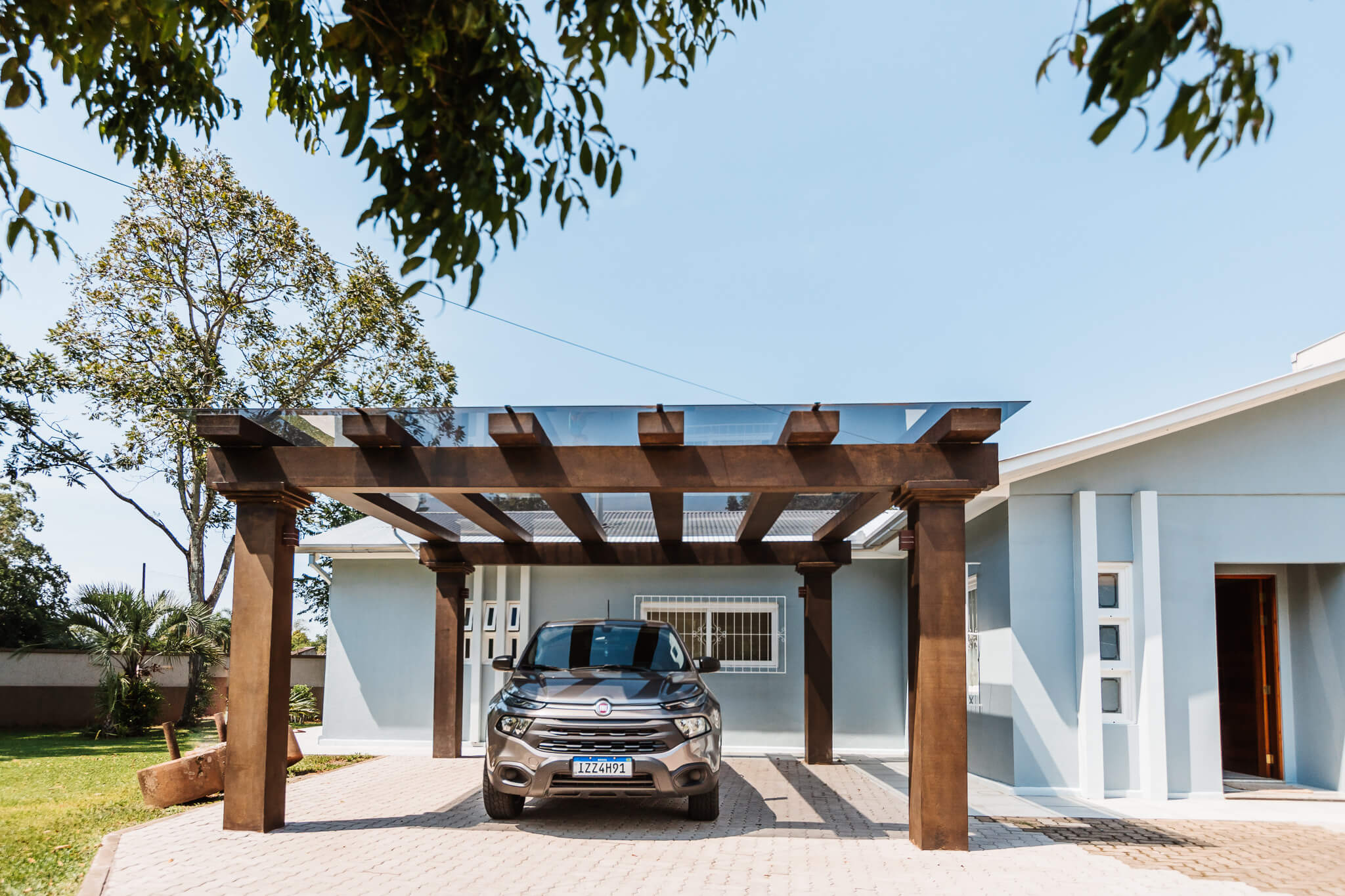 Estrutura utilizada em jardins, vagas de garagens, varanda, churrasqueiras, locais próximos à piscinas ou em espaços de transição, como por exemplo corredores externos.