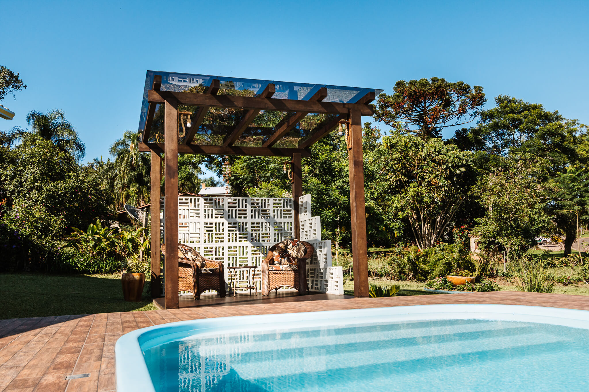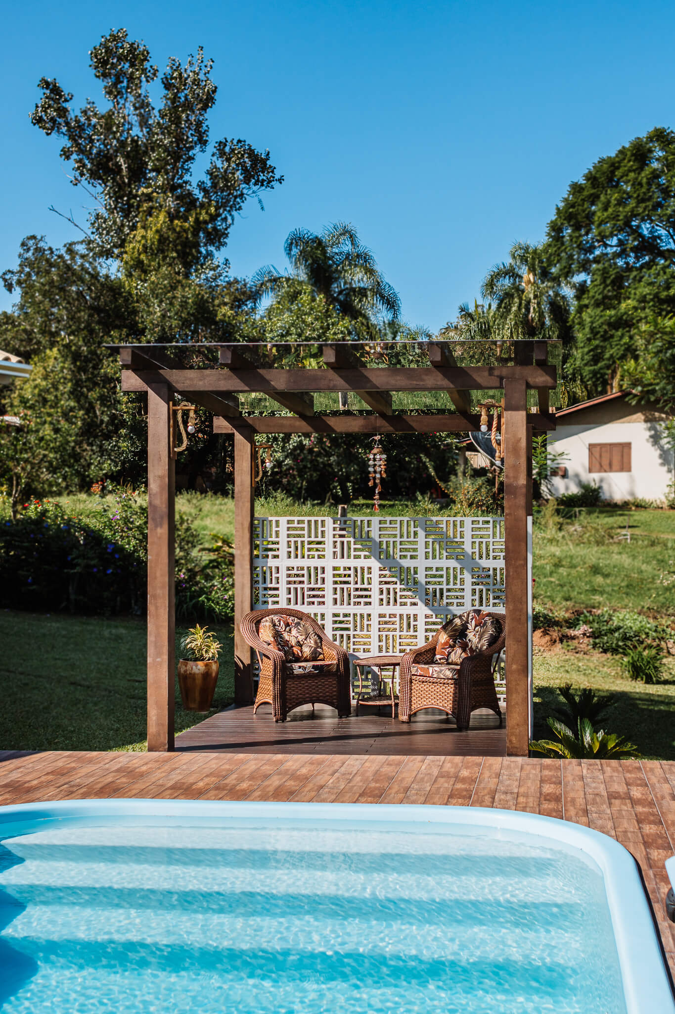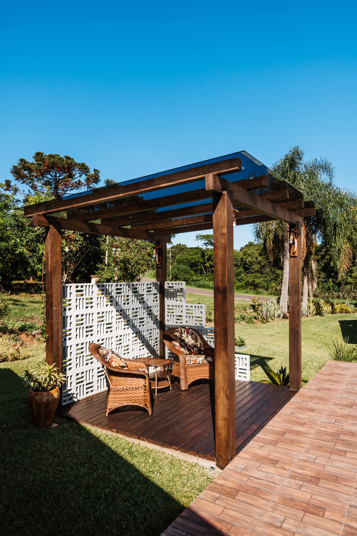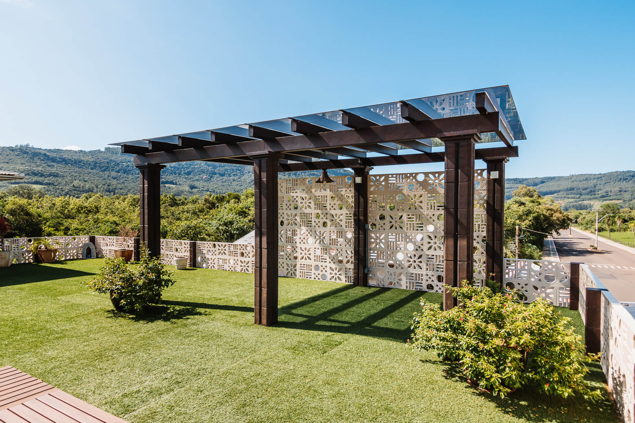 Estrutura utilizada em jardins, vagas de garagens, varanda, churrasqueiras, locais próximos à piscinas ou em espaços de transição, como por exemplo corredores externos.