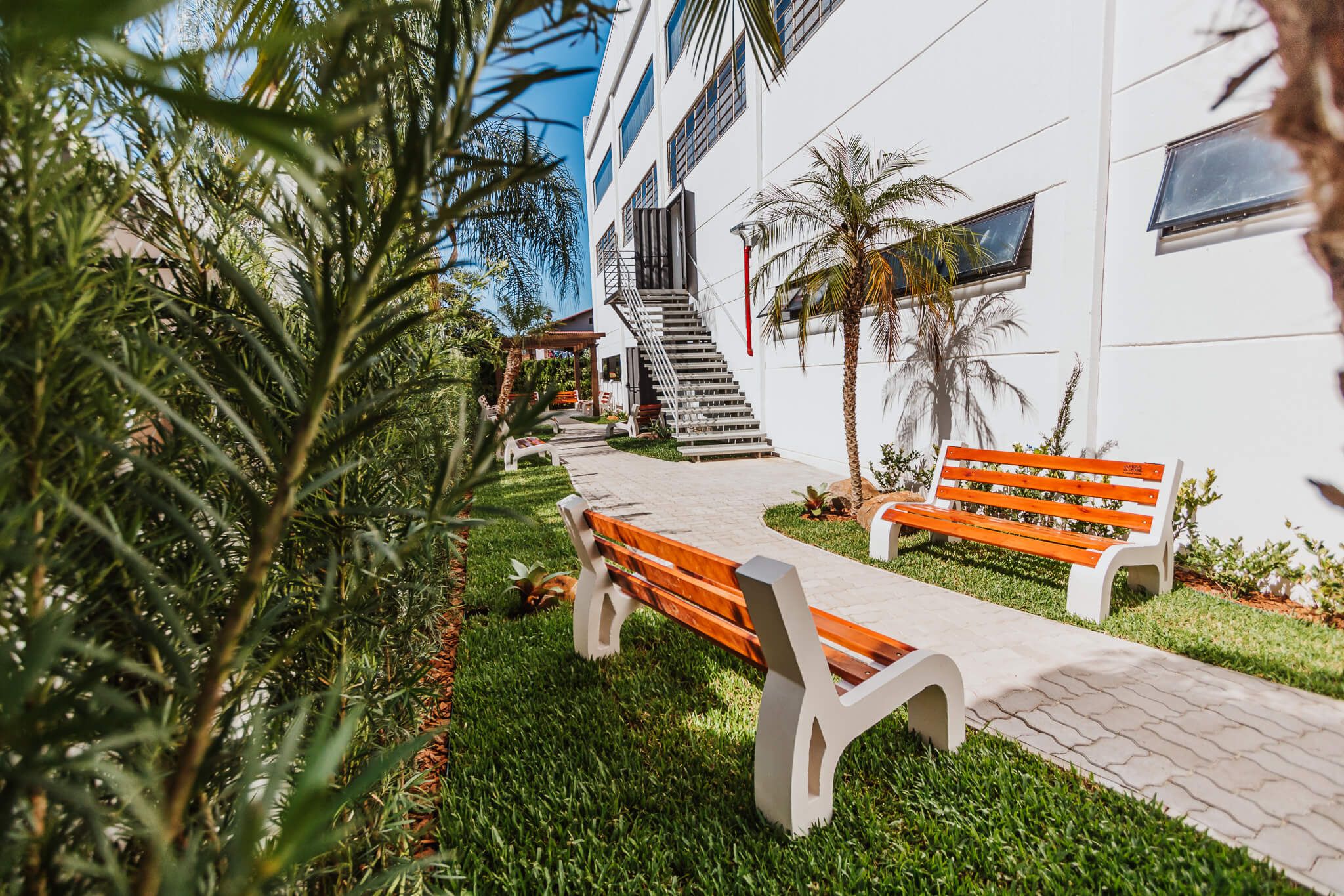 De formatos e tamanhos variados, os bancos são muito utilizados em jardins, praças, parques, obras públicas. Bancos e mesas de concreto são ótimas alternativas para deixar qualquer ambiente externo aconchegante, facilita na acomodação e maior utilização de espaço de lazer além de serem altamente resistentes ao tempo.