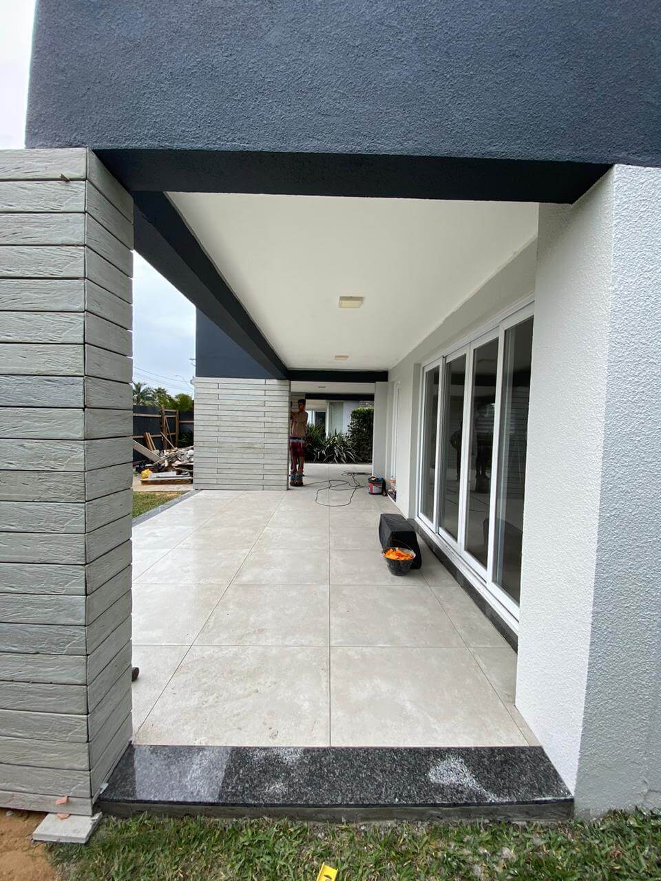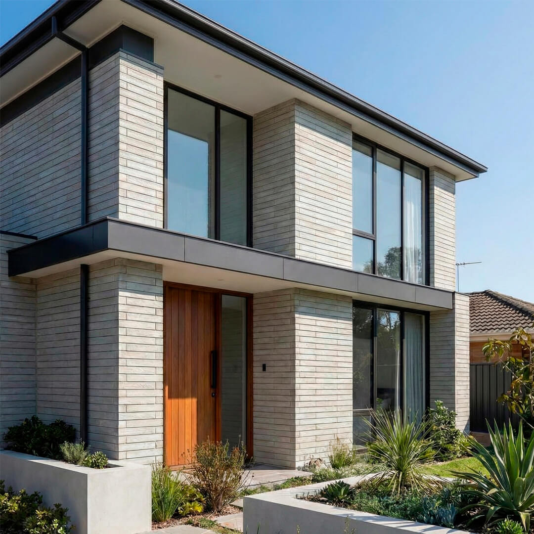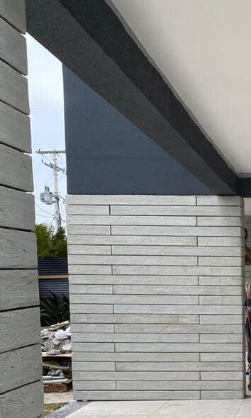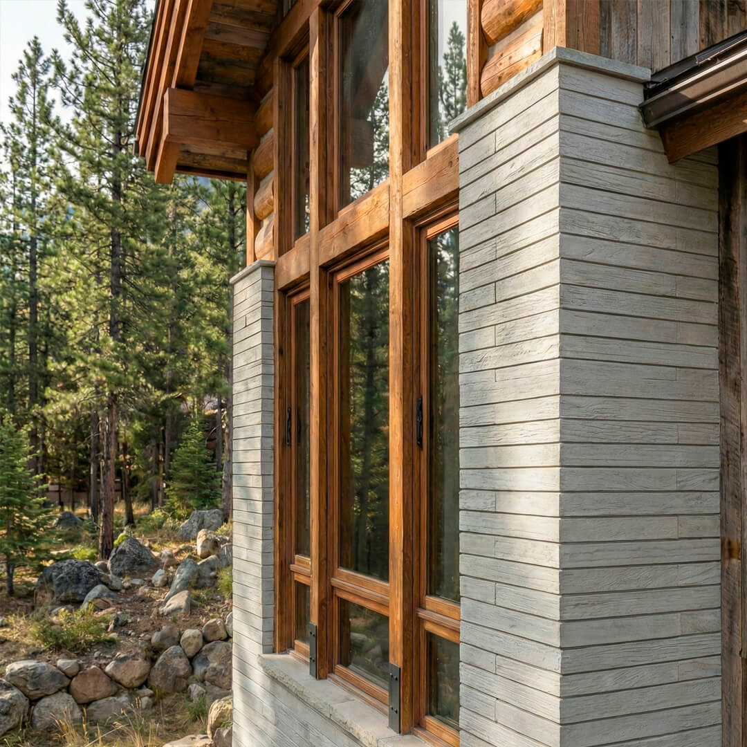 Revestimento de parede fabricado em concreto que imita madeira.